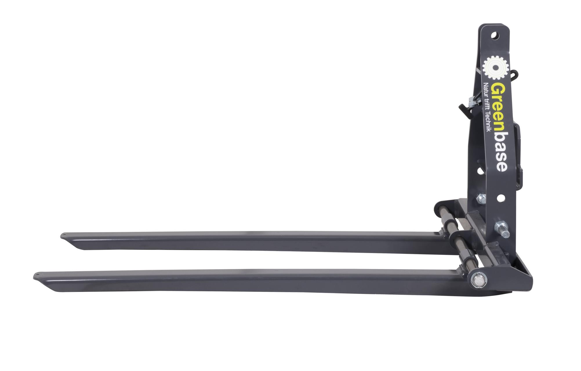 Hubgabel für Traktoren. Mit einer Tragfähigkeit bis zu 500 kg ist diese umklappbare Hubgabel 500 die Unterstützung, die Sie an ihrem Traktor an den Dreipunktanschluß mit Kat am Heck montieren können. Mit einer in der Breite einstellbaren Gabel von 53 cm bis 83 cm (Gabelaußenmaß) und einer Zinkenlänge von 110 cm ist diese Hubgabel nicht nur für Standard-Paletten geeignet. Nutzen auch Sie die Möglichkeit, mithilfe Ihres landwirtschaftlichen Traktors und dieser Palettengabel. den Brennholztransport zu vereinfachen. Schnell und einfach zum Ziel bzw. zum Brennholzlager.